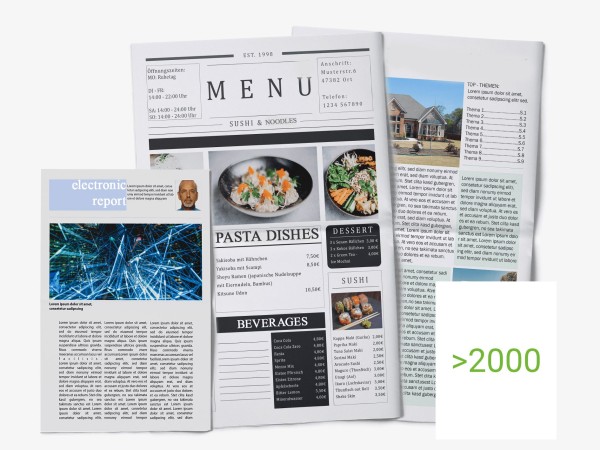 In our online shop, you can configure your own newspapers and advertising papers and have them printed from 2,000 copies upwards. Simply work your way down the calculator to select your preferred options and you’ll instantly receive a non-binding quote. From the precise number of copies to the format, paper type and page count – you can experiment with all kinds of combinations and tailor your newspaper or advertiser exactly to your needs, always keeping an eye on the price. Thanks to our high-performance web offset printing, your newspapers and advertising papers are produced in just a few hours. Even exceptionally large orders of more than 100,000 copies are no problem at all. Our printworks is fully equipped with modern coldset presses and the expertise required to produce your bespoke newspapers and advertising sheets quickly and reliably, delivered straight to your door.